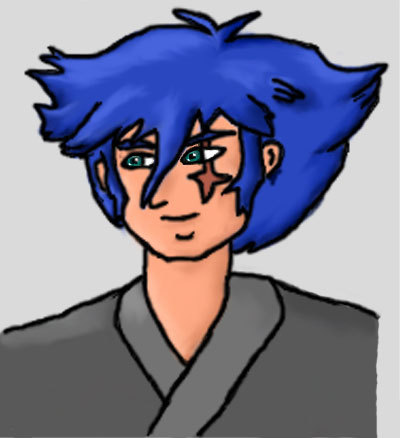 A digital colorization of a drawing I did of Kujuurou back when I was in college. (I graduated in 2000.) The desks in our dorm rooms had a white top. So I quickly sketched this in pencil, and then took a digital photo of it. I still like the style of this. 🙂