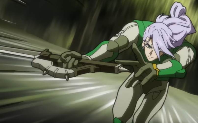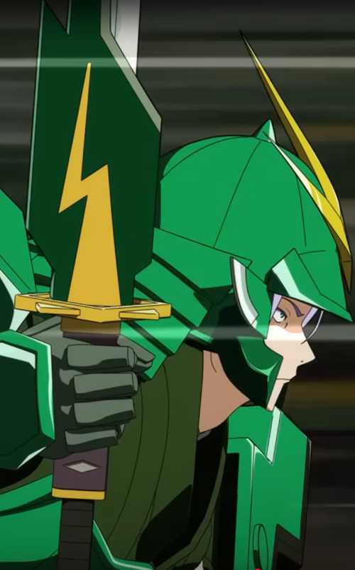 Shion is holding a sword that looks similar to the sword Gai is using out of armor.