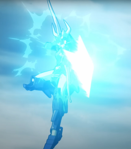 The Sky armor doesn’t look too different from what we can see, aside from again a bit of a boxy look at the knee. (We seriously need a closer look at it.) Also it seems that the charged up arrow releases several magical energy arrows now.